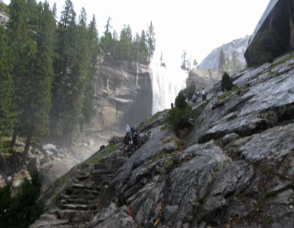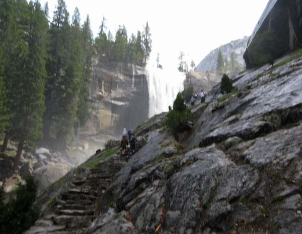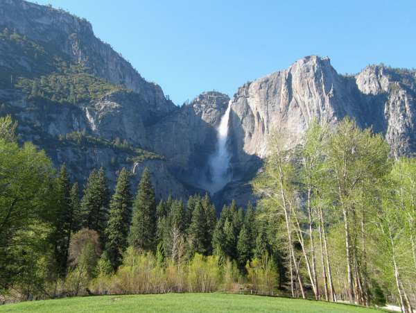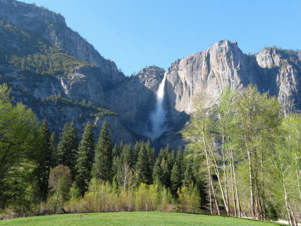 Bridal Veil Falls, El Capitan, and Half Dome in the distance.